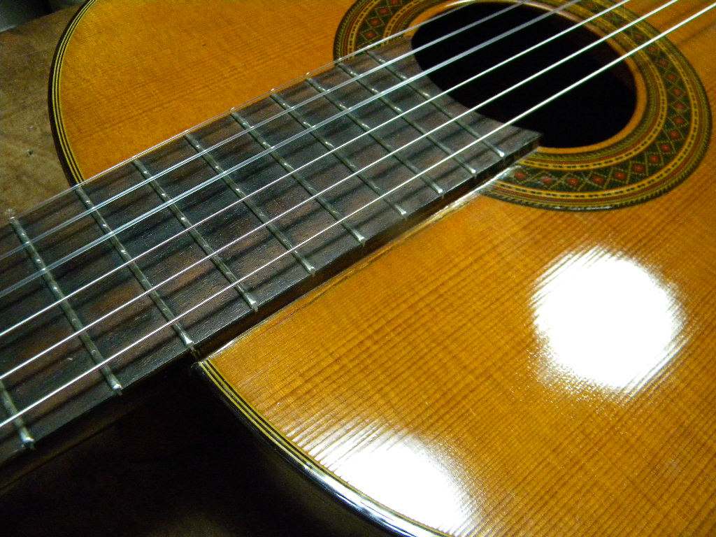 古い楽器で、現在のペグとはパーツが微妙に違いますが、たまたま、同タイプの古いパーツのストックがあったので、交換。