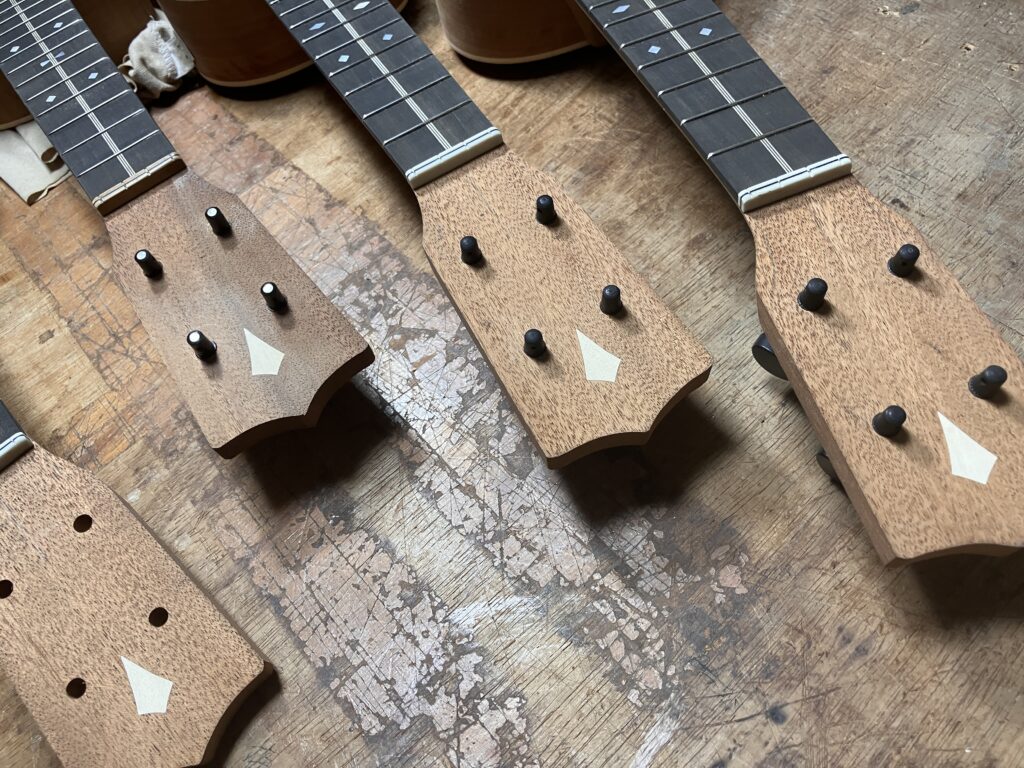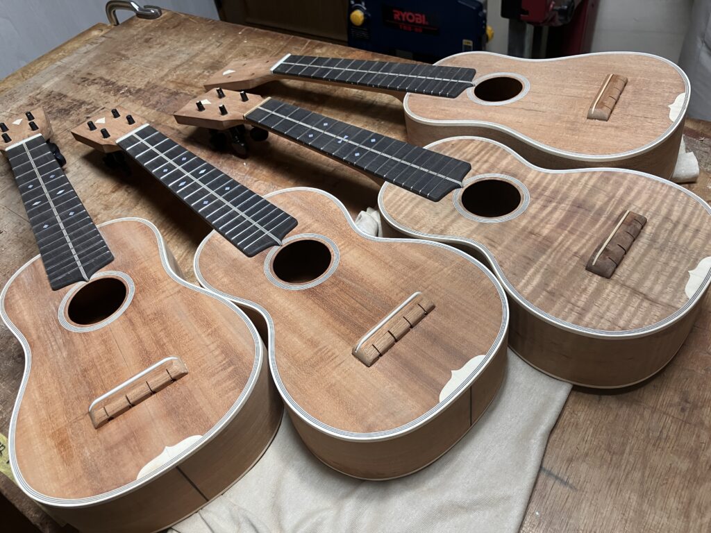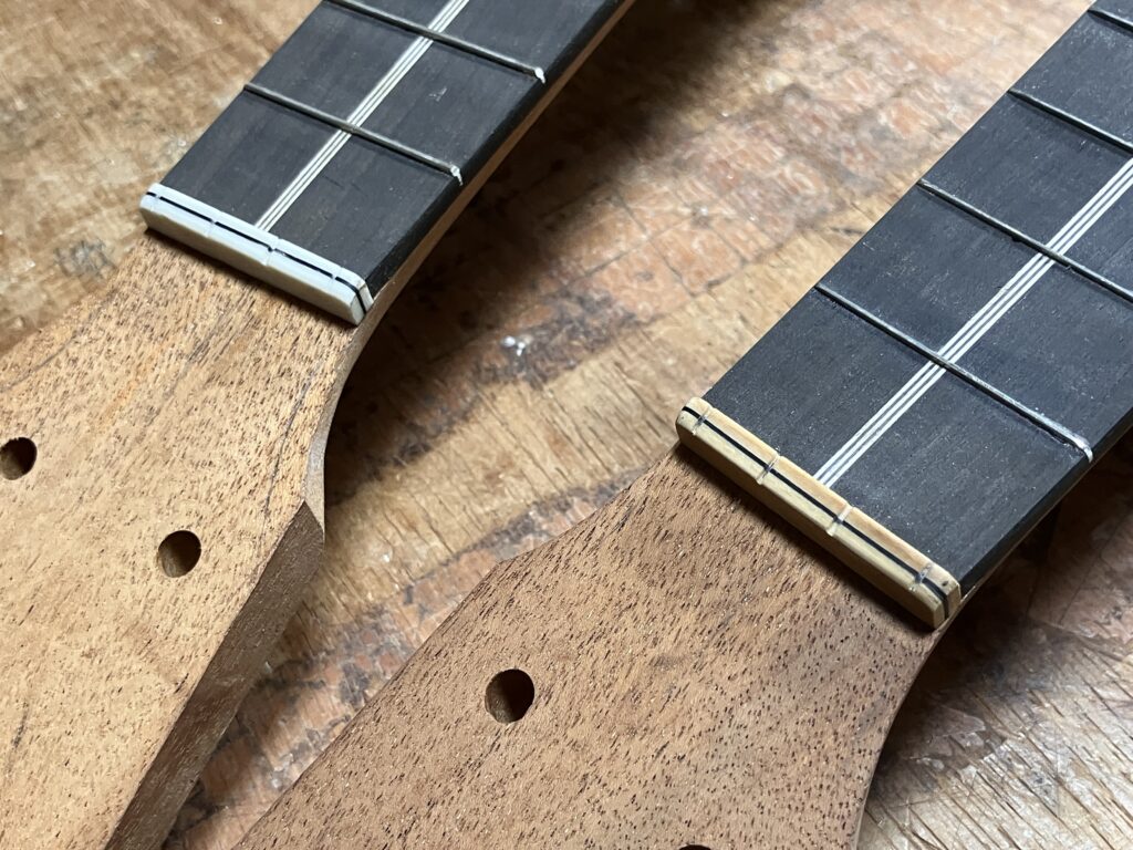 ウクレレはブリッジを作ってましたが、サドルを製作し合わせて成型仕上げ。