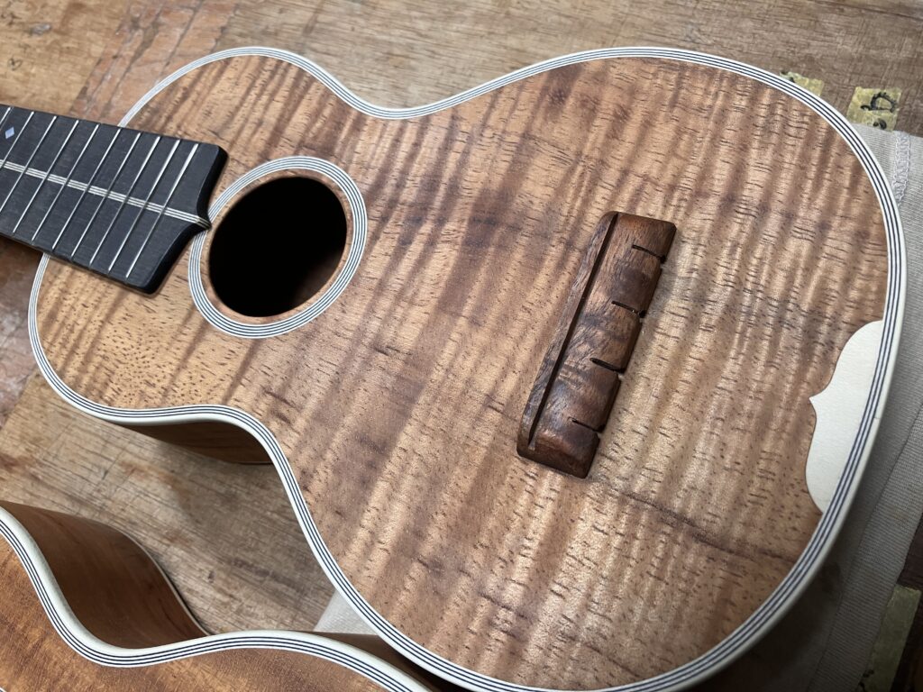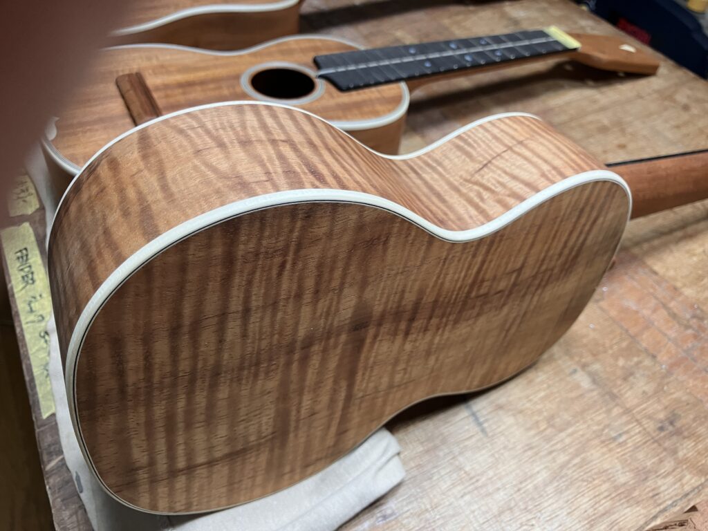セラックを塗るとボディーの杢がはっきり出てきます。