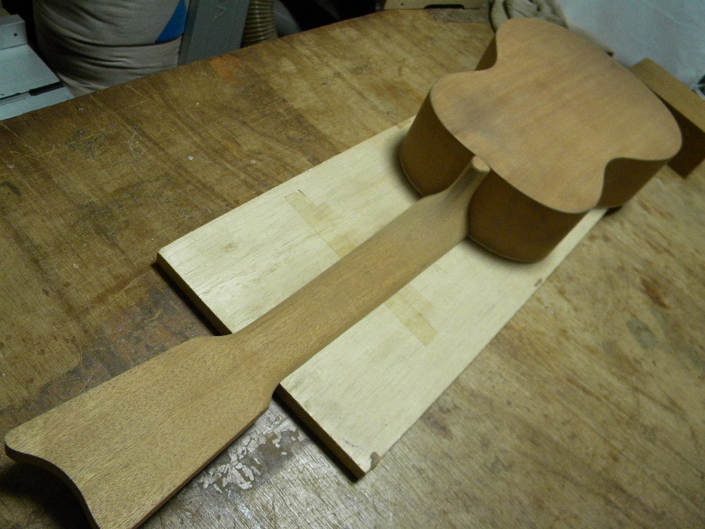 昨日、ヘッドプレートを接着したネックのラフカットから始めました。