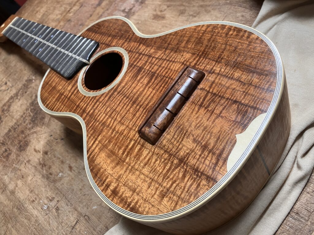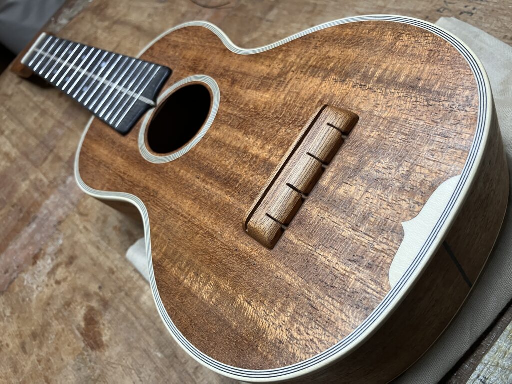 2025-12-19 ウクレレ、目止め 今日は概ね曇りで雨も降る天気。 ウクレレは目止め中です。 セラックフレンチポリッシュは下地が大事なので目止めに時間をかけてます。 目止め中のウクレレです。 目止めが終わったら塗りに入ります。 Home › Blog › ウクレレ、目止め 関連記事 ウクレレ、セラックフレンチポリッシュ、仕上げ工程 大正琴、キーボード製作 ウクレレ、バインディング仕上げ ウクレレ、箱化 style3ウクレレ、ブロック接着準備 ウクレレ、制作中 ウクレレ、目止め終了